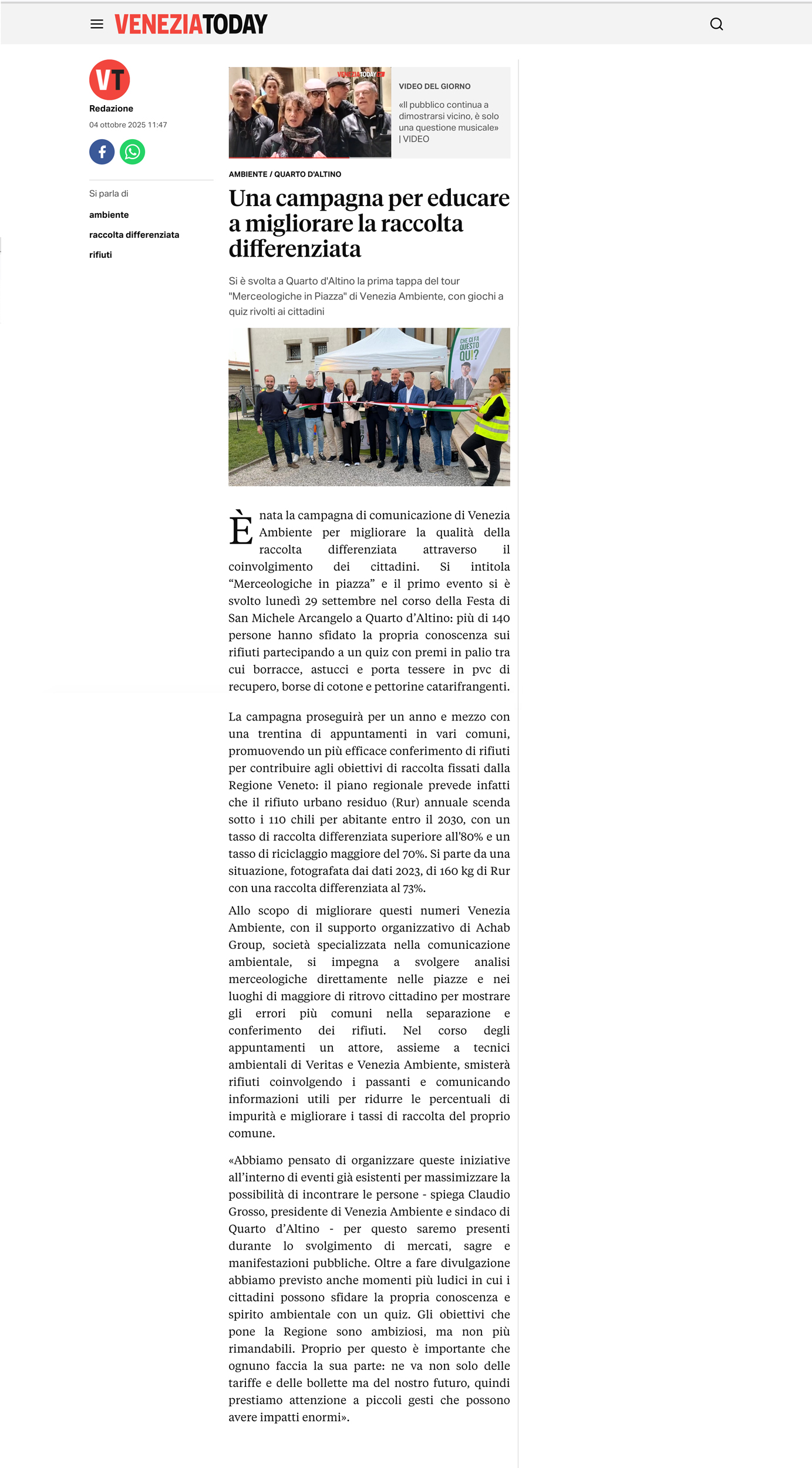 Articolo da Il Gazzettino di Venezia e Mestre: